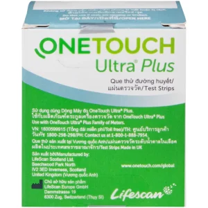 Que thử đường huyết OneTouch Ultra Plus dùng cùng máy đo OneTouch Ultra Plus/OneTouch Ultra Plus Flex™ để đo nồng độ glucose trong mẫu máu mao mạch tươi lấy từ đầu ngón tay. Que thử hỗ trợ theo dõi đường huyết chủ động tại nhà, tiện lợi và nhanh chóng. Lưu ý: que thử chỉ dùng 1 lần; sau khi mở lọ, thời hạn sử dụng tối đa 6 tháng, bảo quản trong lọ gốc ở 5–30°C, tránh ẩm và nguồn nhiệt.